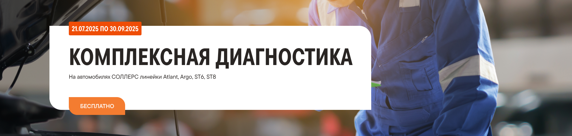 Для владельцев автомобилей СОЛЛЕРС линейки Atlant, Argo, ST6, ST8 дилер бесплатно проводит комплексную диагностику*